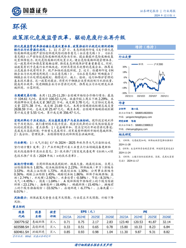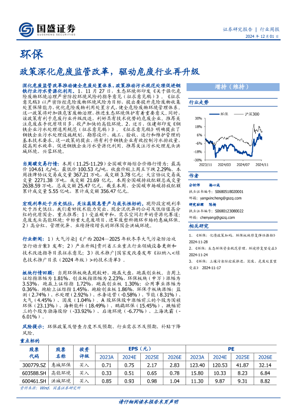 【国盛证券】【20241201】环保行业周报:政策深化危废监管改革,驱动危废行业再升级-13页