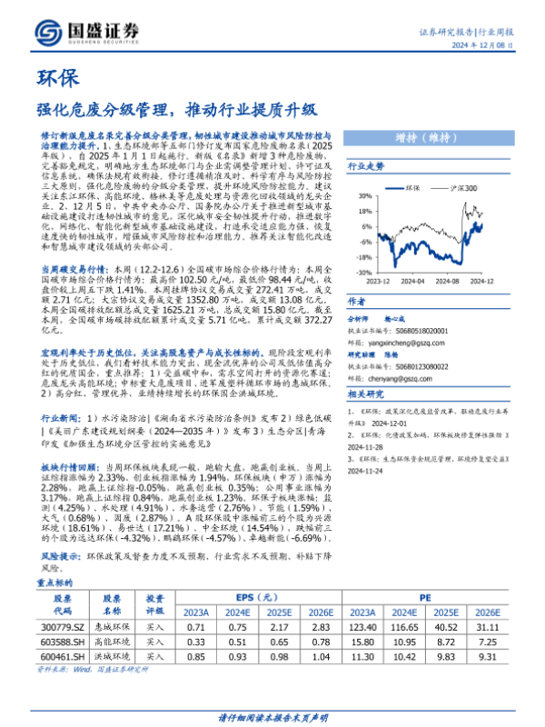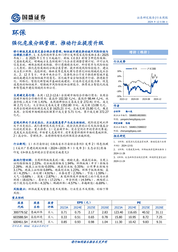 危废管理 环保政策 碳交易 行业周报 韧性城市建设