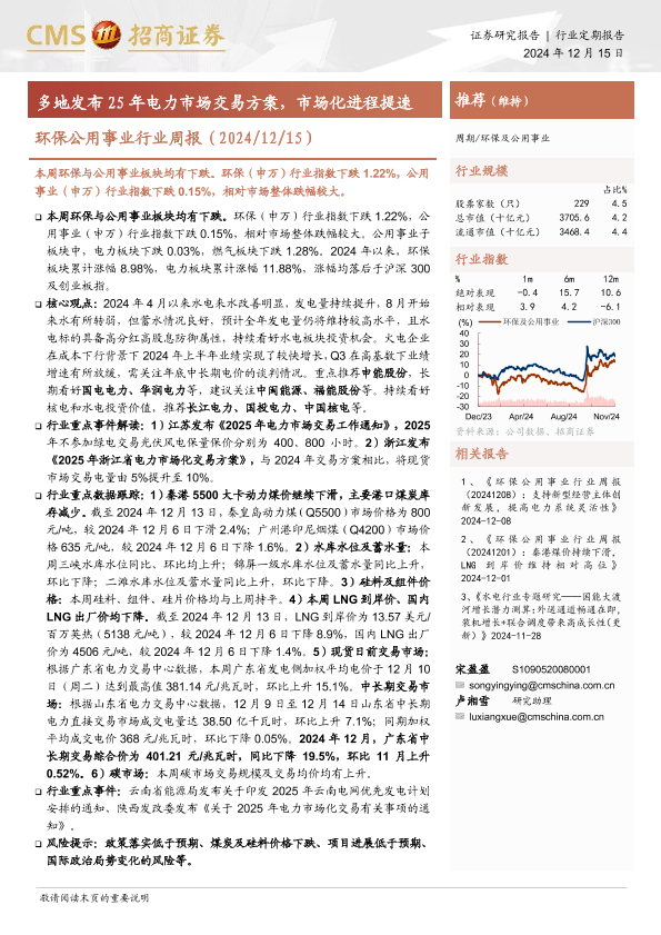 【海通证券】【20241215】环保公用事业行业周报:多地发布25年电力市场交易方案,市场化进程提速-19页