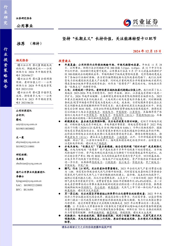 兴业证券 电力热力燃气水生产 2024年 PDF 2.08 MB