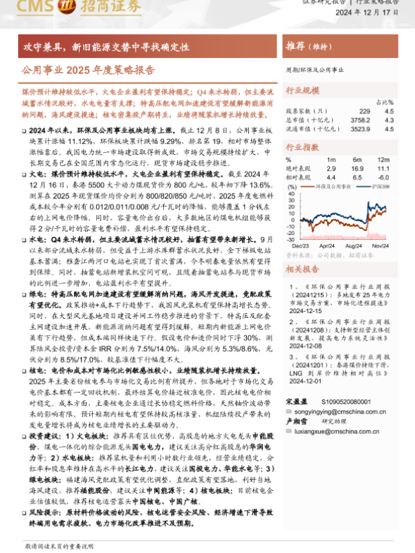 【海通证券】【20241217】公用事业2025年度策略报告:攻守兼具,新旧能源交替中寻找确定性-28页