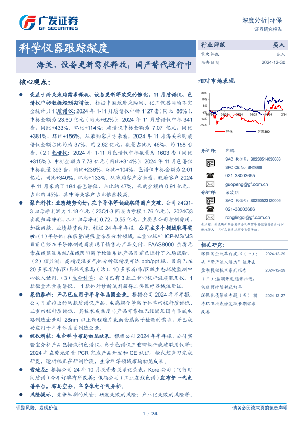 【广发证券】【20241230】科学仪器跟踪深度:海关、设备更新需求释放,国产替代进行中-24页