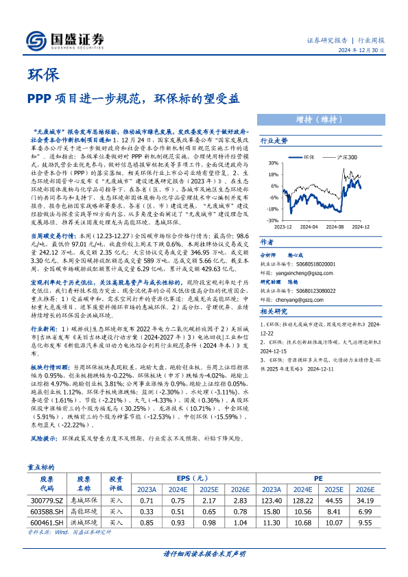 【国盛证券】【20241230】环保行业周报:PPP项目进一步规范,环保标的望受益-13页