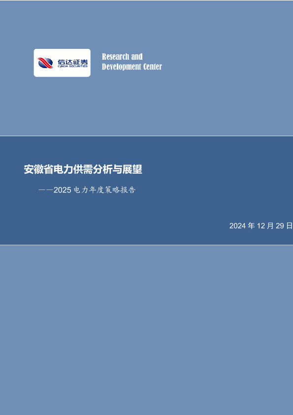 【信达证券】【20241229】2025电力年度策略报告:安徽省电力供需分析与展望-29页