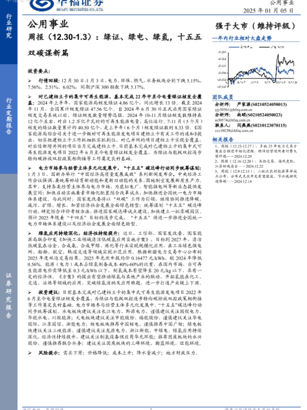 【华福证券】【20250105】公用事业行业周报:绿证、绿电、绿氢,十五五双碳谋新篇-16页