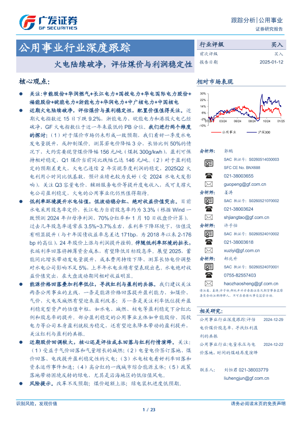 【广发证券】【20250112】火电陆续破净,评估煤价与利润稳定性-23页