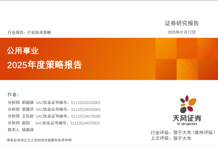 【天风证券】【20250112】公用事业2025年度策略报告-73页