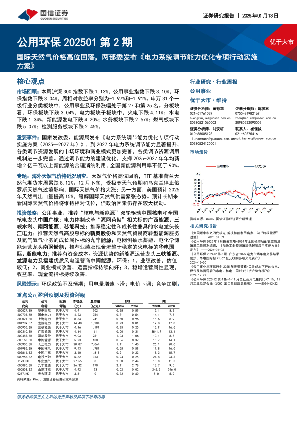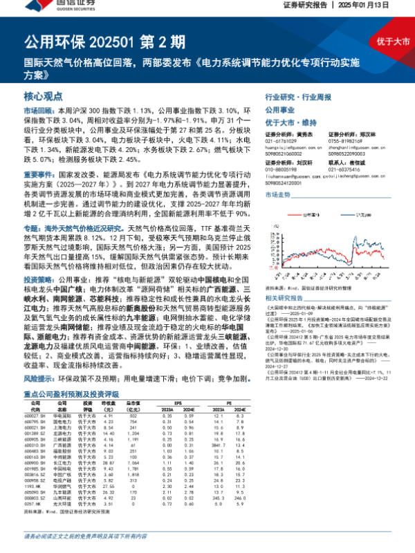 【国信证券】【20250113】公用环保202501第2期:国际天然气价格高位回落,两部委发布《电力系统调节能力优化专项行动实施方案》-27页