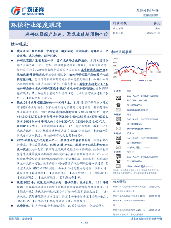 【广发证券】【20250119】环保行业深度跟踪:科研仪器国产加速,聚焦业绩超预期个股-12页