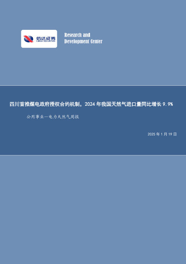 【信达证券】【20250119】四川首推煤电政府授权合约机制,2024年我国天然气进口量同比增长9.9%-21页
