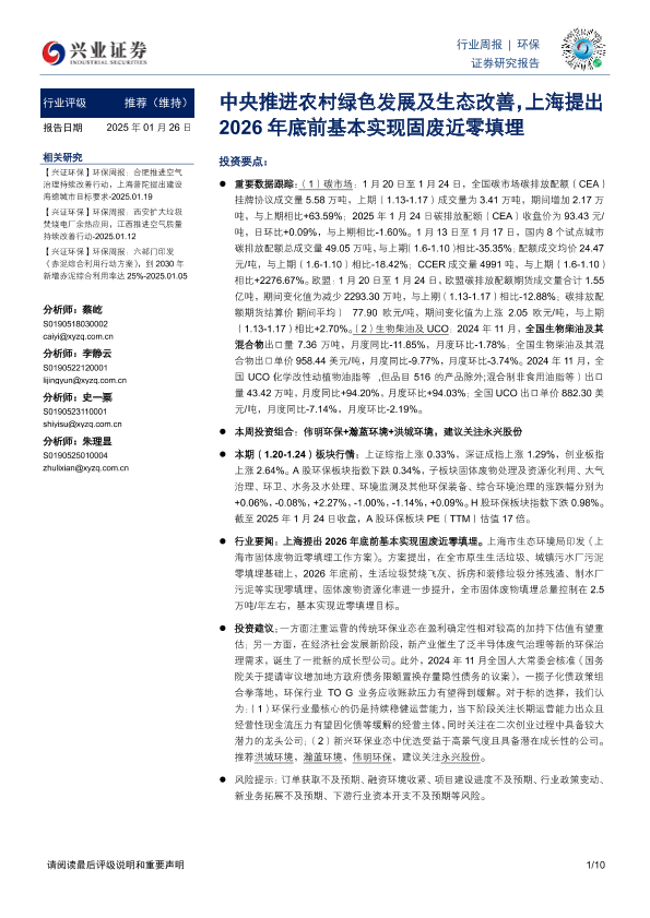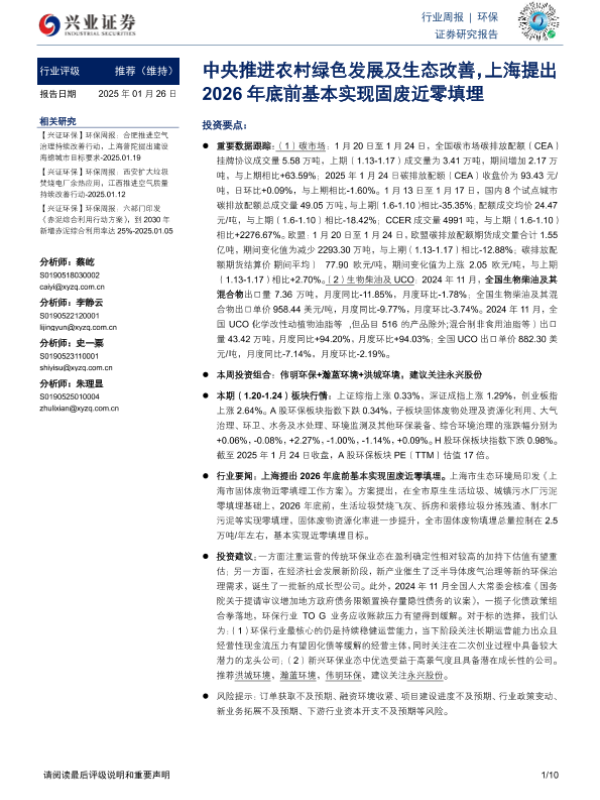 【兴业证券】【20250126】中央推进农村绿色发展及生态改善,上海提出2026年底前基本实现固废近零填埋-10页