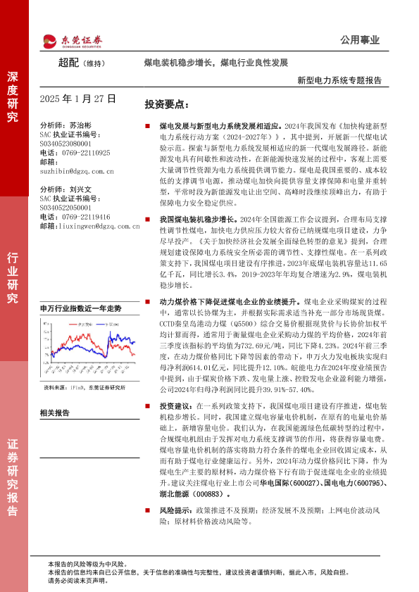 【东莞证券】【20250127】新型电力系统专题报告:煤电装机稳步增长,煤电行业良性发展-14页