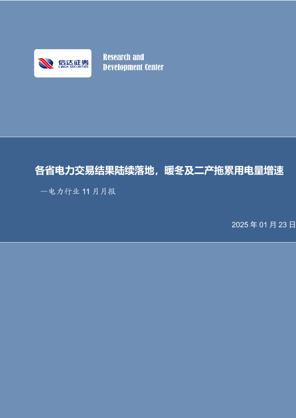 【信达证券】【20250123】电力行业11月月报:各省电力交易结果陆续落地,暖冬及二产拖累用电量增速-26页