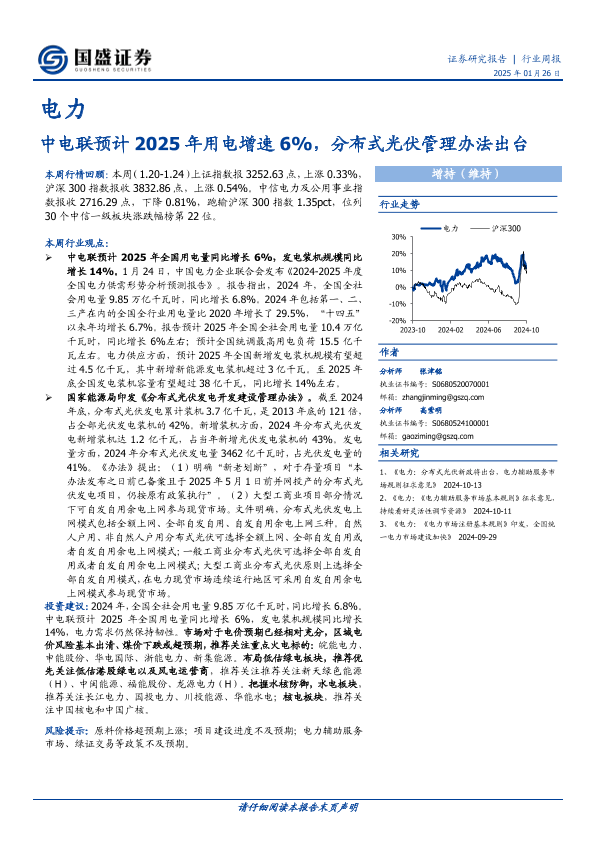 【国盛证券】【20250126】电力行业周报:中电联预计2025年用电增速6%,分布式光伏管理办法出台-16页
