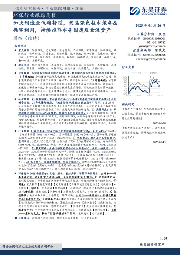 【东吴证券】【20250126】加快制造业低碳转型,聚焦绿色技术装备&循环利用,持续推荐水务固废现金流资产-33页