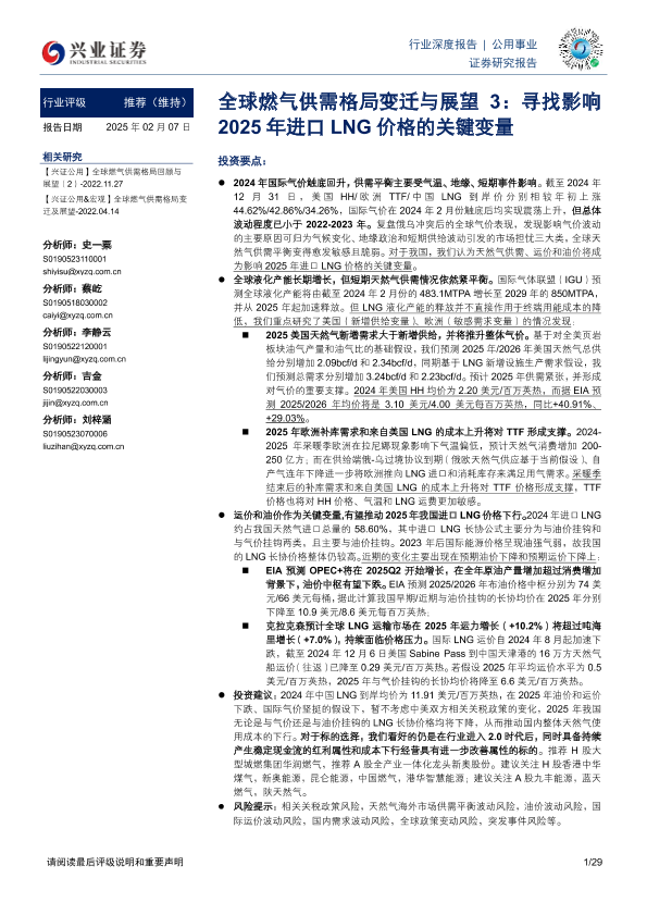 【兴业证券】【20250207】全球燃气供需格局变迁与展望3:寻找影响2025年进口LNG价格的关键变量-29页