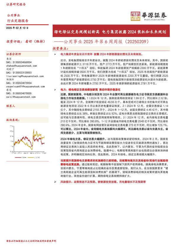 【华源证券】【20250210】公用事业2025年第6周周报:绿电绿证交易规模创新高 电力集团披露2024装机和未来规划-12页