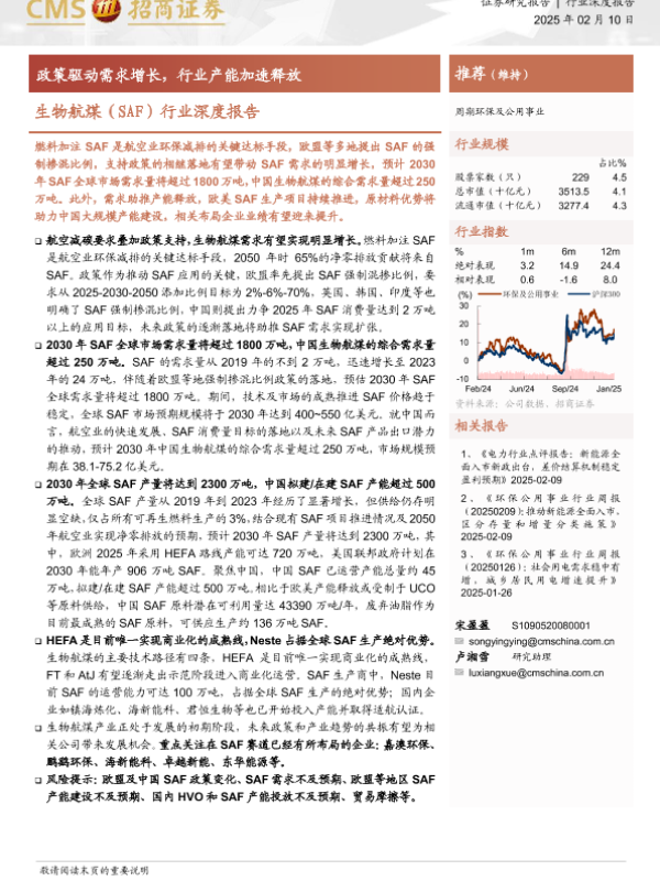 【海通证券】【20250210】生物航煤(SAF)行业深度报告:政策驱动需求增长,行业产能加速释放-43页