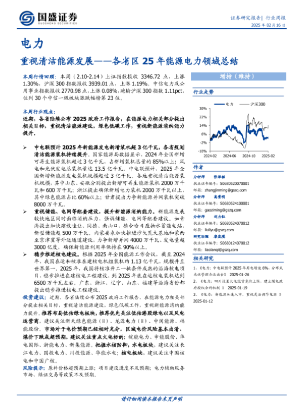 【国盛证券】【20250216】电力行业周报:各省区25年能源电力领域总结-15页