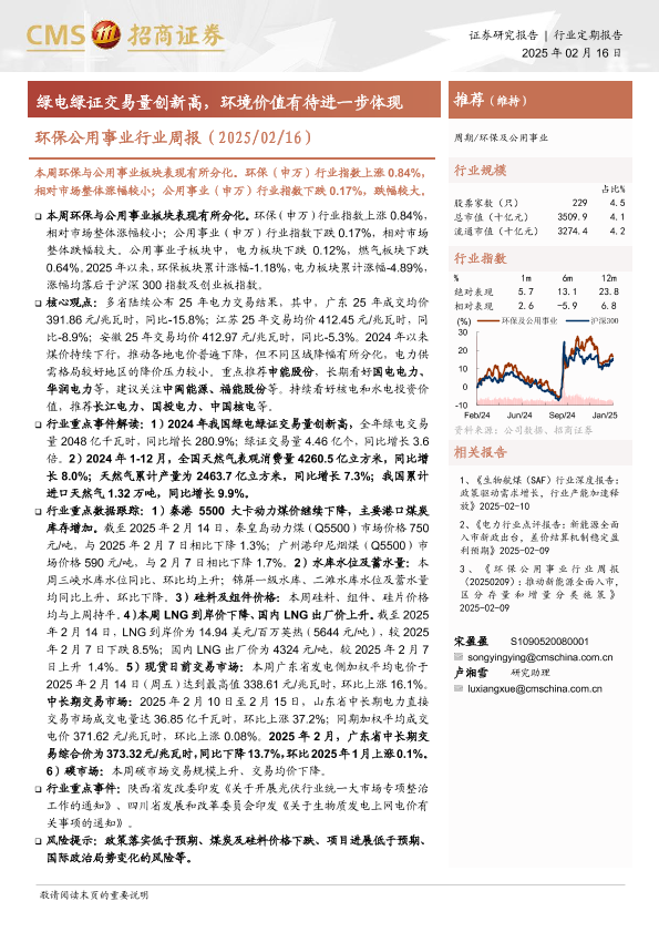 【海通证券】【20250216】环保公用事业行业周报:绿电绿证交易量创新高,环境价值有待进一步体现-18页