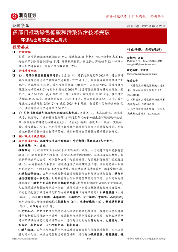 【浙商证券】【20250223】多部门推动绿色低碳和污染防治技术突破-15页