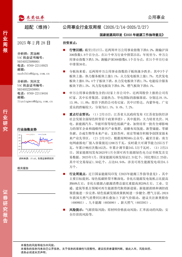 【东莞证券】【20250228】公用事业行业双周报:国家能源局印发《2025年能源工作指导意见》-10页