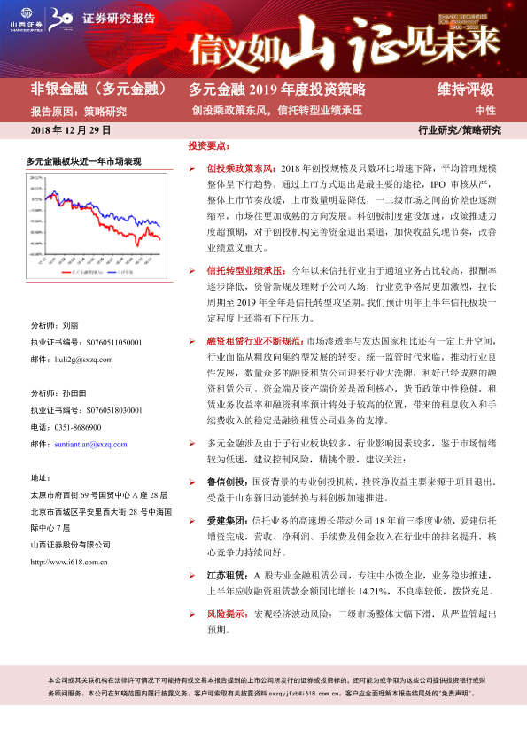 【山西证券】【20181229】多元金融2019年度投资策略:创投乘政策东风,信托转型业绩承压-30页