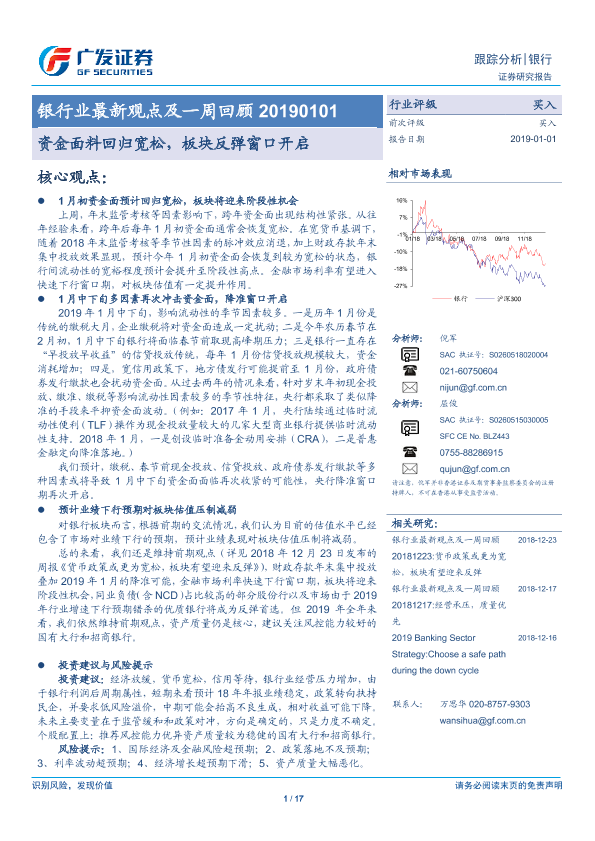 【广发证券】【20190101】银行行业最新观点及一周回顾:资金面料回归宽松,板块反弹窗口开启-17页