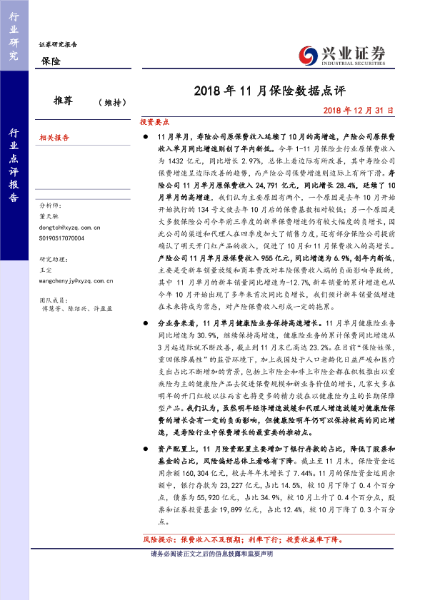 【兴业证券】【20181231】2018年11月保险数据点评-6页