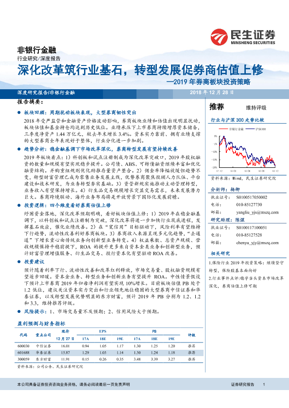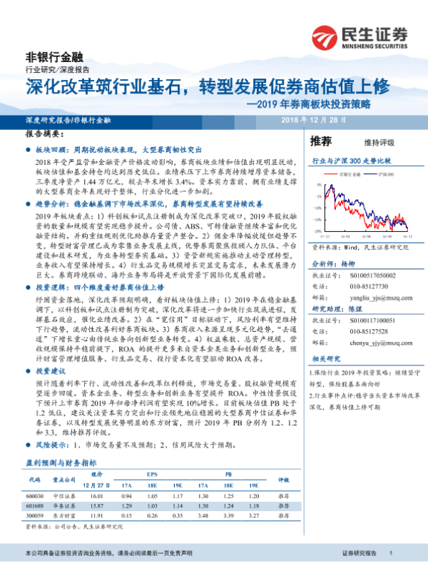 【民生证券】【20181228】深化改革筑行业基石,转型发展促券商估值上修——2019年券商板块投资策略-22页