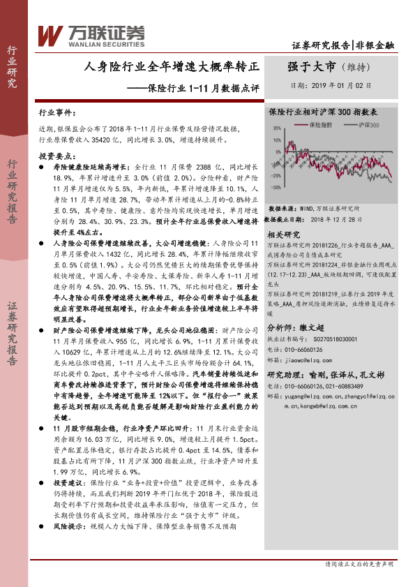 【万联证券】【20190102】保险行业1-11月数据点评:人身险行业全年增速大概率转正-6页