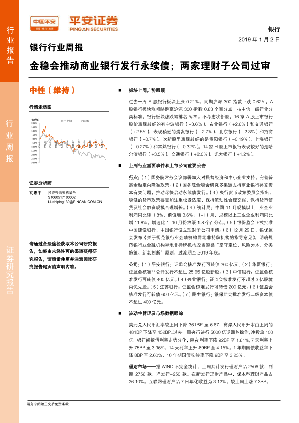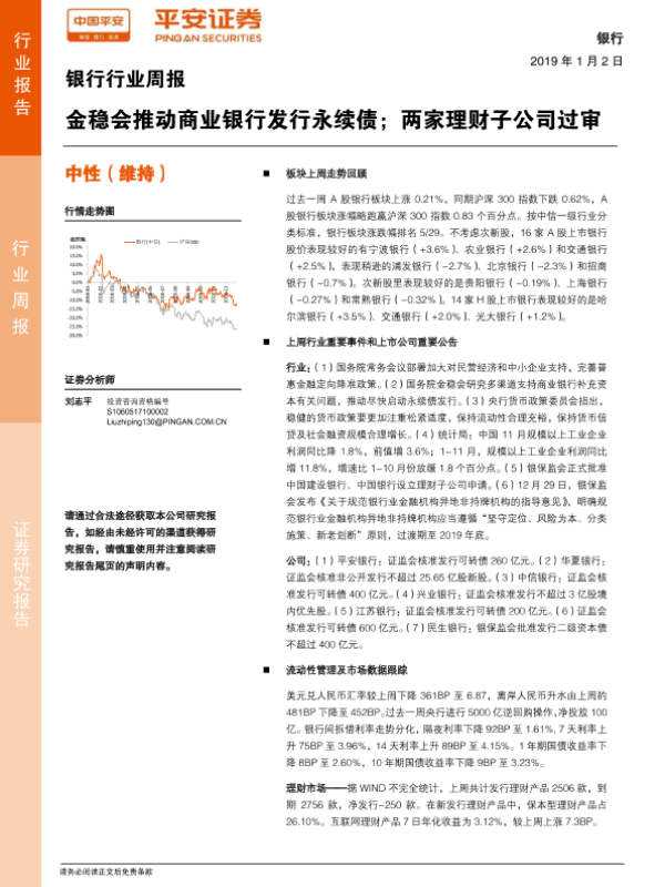 【平安证券】【20190102】银行行业周报:金稳会推动商业银行发行永续债;两家理财子公司过审-14页
