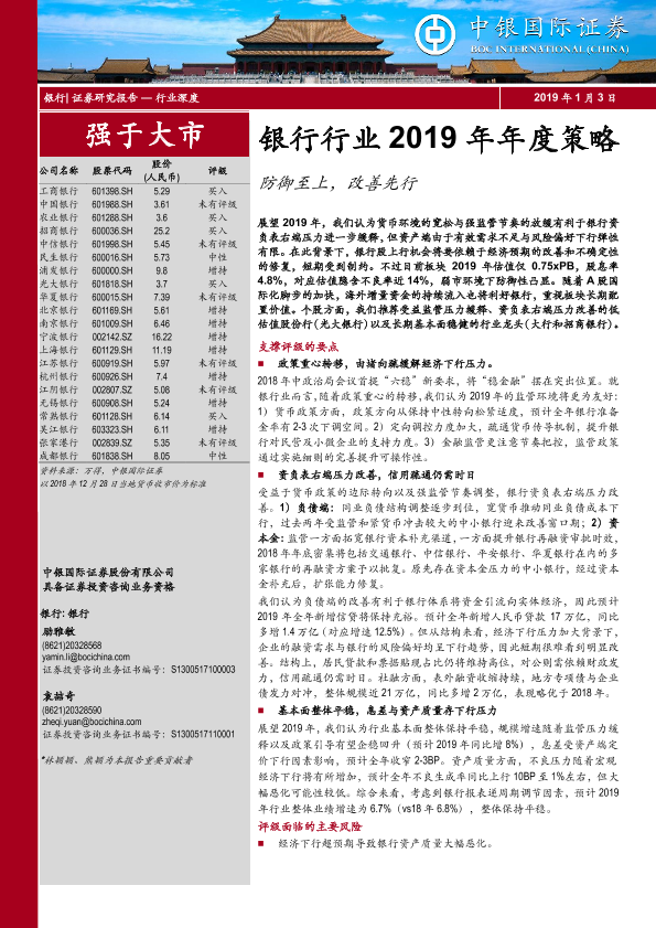 【中银证券】【20190103】银行行业2019年年度策略:防御至上,改善先行-46页