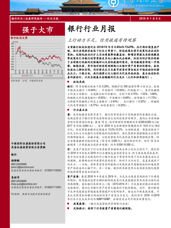 【中银证券】【20190104】银行行业月报:上行动力不足,信用疏通有待观察-19页