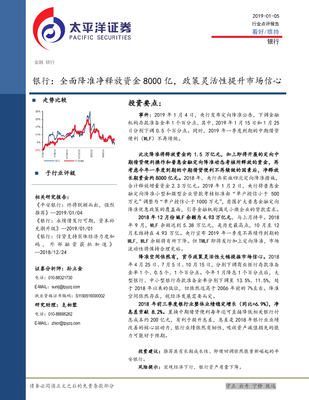 【太平洋证券】【20190105】银行行业点评报告:全面降准净释放资金8000亿,政策灵活性提升市场信心-8页