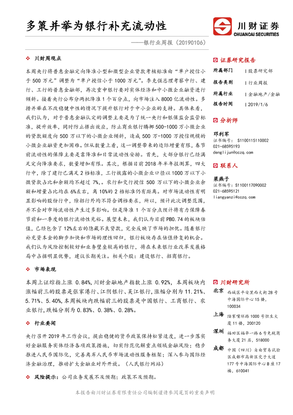 【川财证券】【20190106】多策并举为银行补充流动性-11页