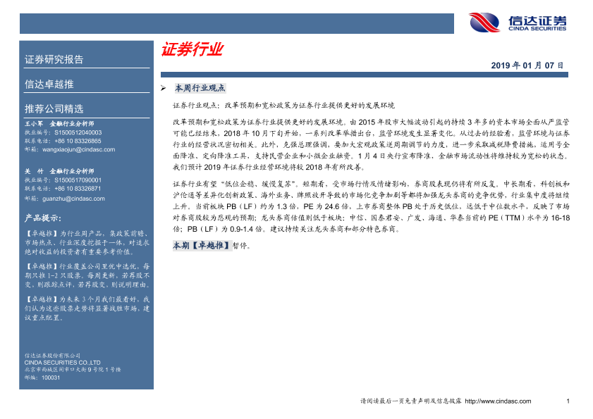【信达证券】【20190107】证券行业周报:改革预期和宽松政策为证券行业提供更好的发展环境-3页