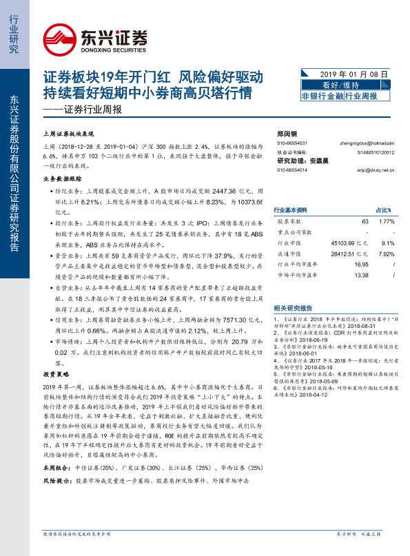 【东兴证券】【20190108】证券行业周报:证券板块19年开门红 风险偏好驱动持续看好短期中小券商高贝塔行情-12页