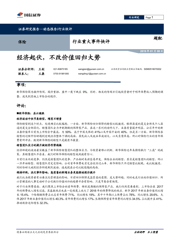 【国信证券】【20190108】保险行业重大事件快评:经济起伏,不改价值回归大势-4页