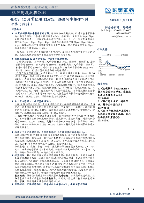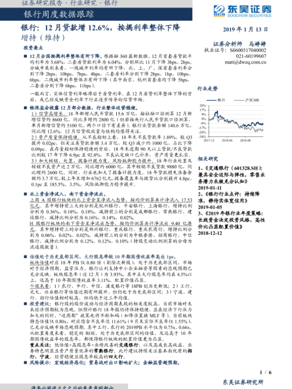 【东吴证券】【20190113】银行周度数据跟踪:12月贷款增12.6%,按揭利率整体下降-6页