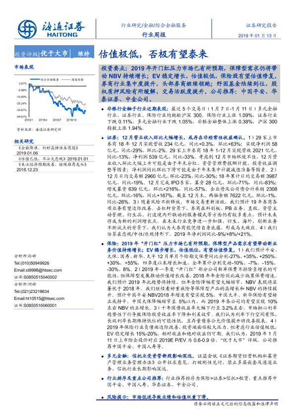 【海通证券】【20190113】综合金融服务行业周报:估值极低,否极有望泰来-22页