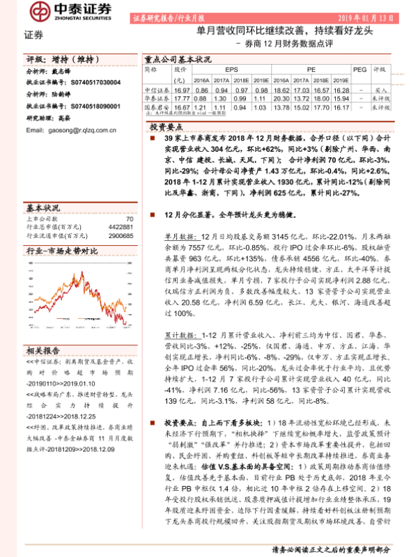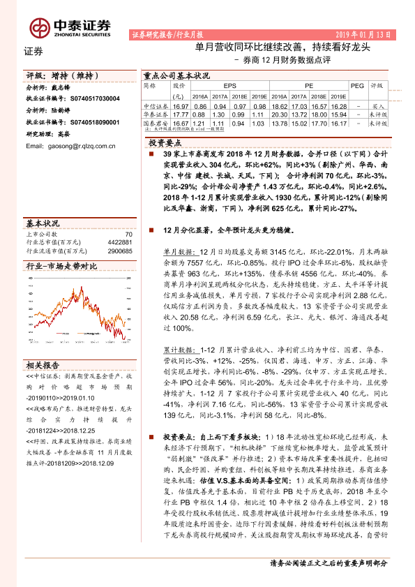 【中泰证券】【20190113】券商12月财务数据点评:单月营收同环比继续改善,持续看好龙头-11页