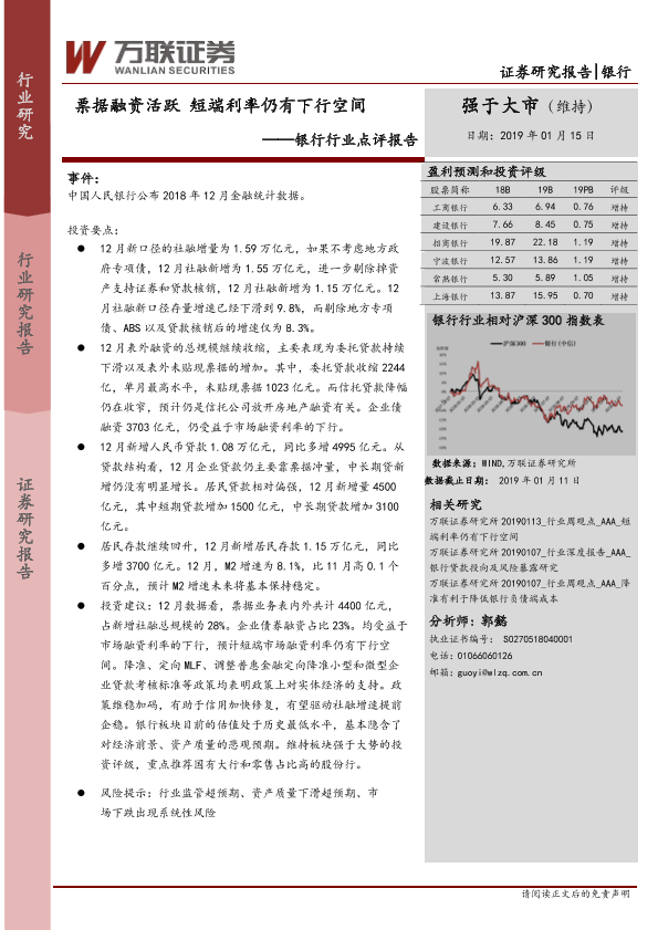 【万联证券】【20190115】银行行业点评报告:票据融资活跃 短端利率仍有下行空间-2页