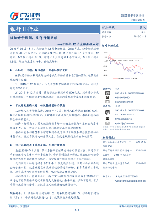 【广发证券】【20190115】银行Ⅱ行业2018年12月金融数据点评:社融好于预期,反弹行情延续-5页