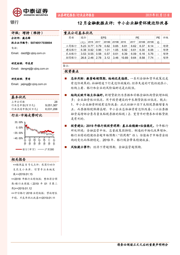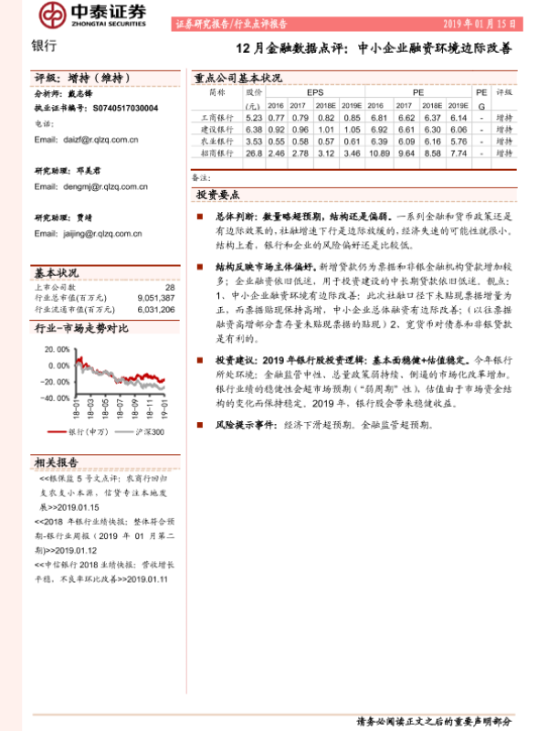 【中泰证券】【20190115】银行12月金融数据点评:中小企业融资环境边际改善-9页