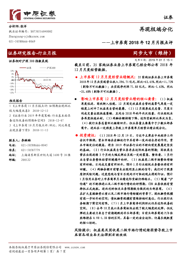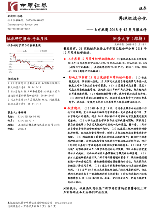 【中原证券】【20190115】上市券商2018年12月月报点评:再现极端分化-7页