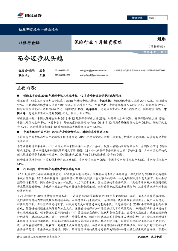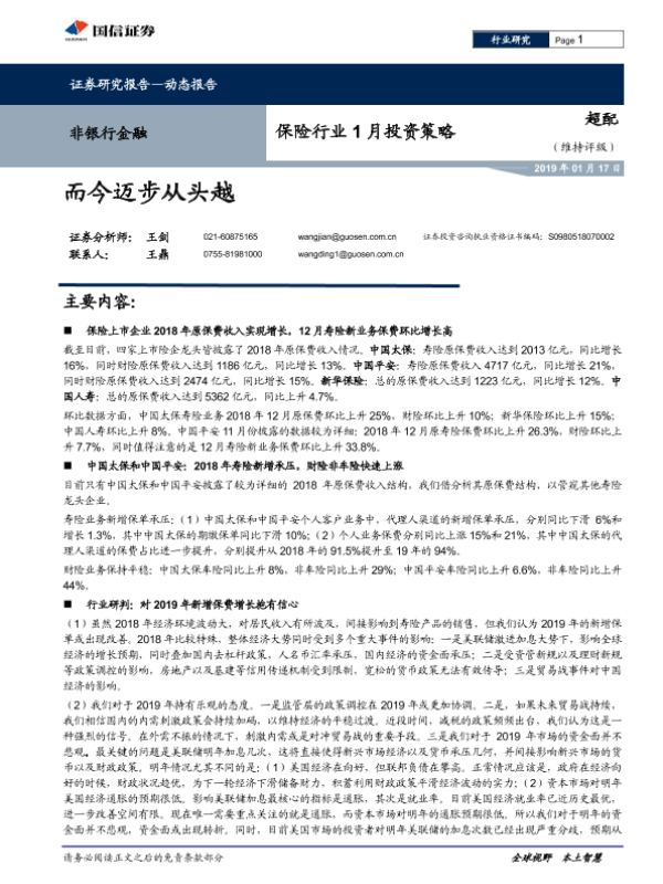 【国信证券】【20190117】保险行业1月投资策略:而今迈步从头越-5页