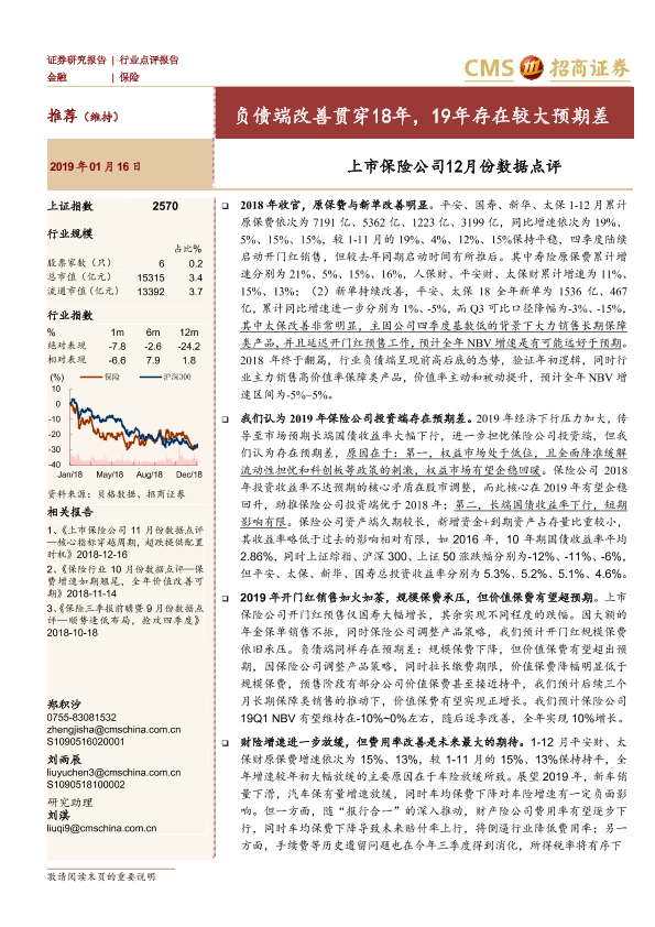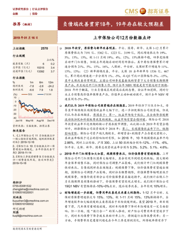 【海通证券】【20190116】上市保险公司12月份数据点评:负债端改善贯穿18年,19年存在较大预期差-4页