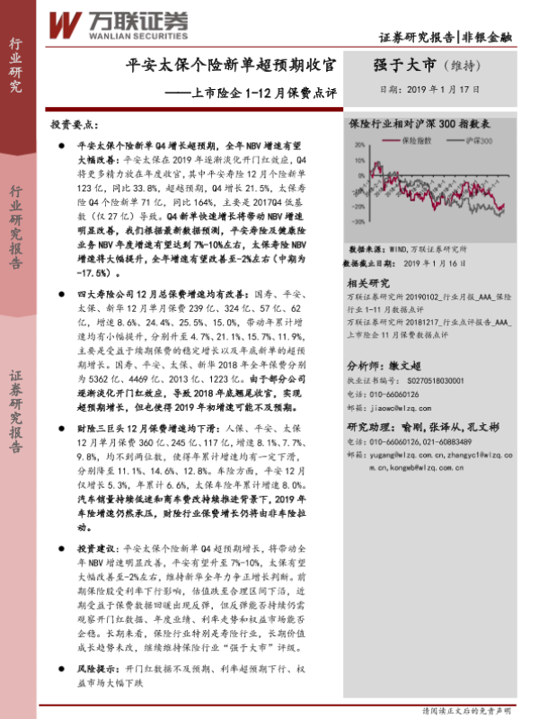 【万联证券】【20190117】上市险企1-12月保费点评:平安太保个险新单超预期收官-3页
