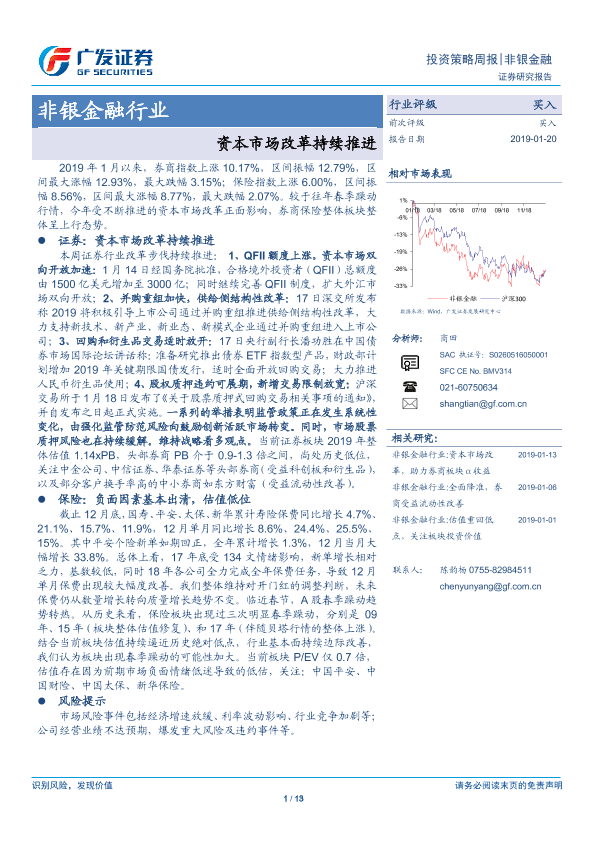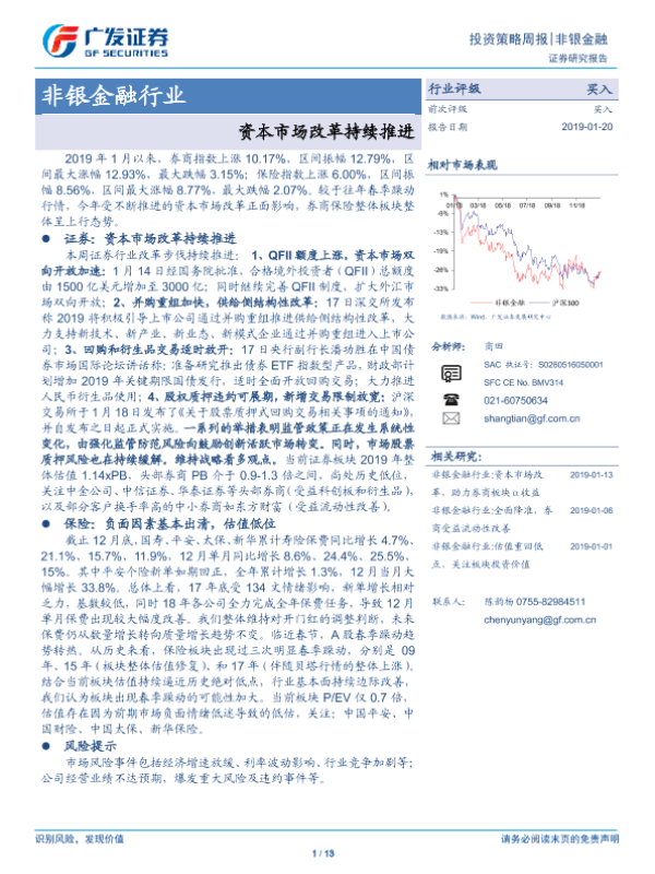 【广发证券】【20190120】非银金融行业投资策略周报:资本市场改革持续推进-13页